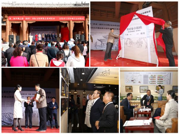 9月26日上午,第三屆敦煌文博會分項活動之一的“絲綢之路文化火車驛站項目”在千年敦煌·月牙泉小鎮(zhèn)中心廣場舉行啟動儀式。甘肅省政協(xié)文史委員會主任、甘肅省國際文化交流中心(協(xié)會)副理事長張正鋒, 甘肅省旅游發(fā)展委員會副主任楊宇宏,甘肅省國際文化交流中心(協(xié)會)秘書長王曉琴,敦煌市旅游局局長陳錦業(yè)等領(lǐng)導(dǎo)出席啟動儀式。甘肅蘭鐵國際旅行社有限公司副總經(jīng)理白林,甘肅萬華實業(yè)集團有限公司總經(jīng)理、敦煌月泉小鎮(zhèn)文化旅游有限公司董事長牛新偉共同為文化火車驛站啟動揭幕。
