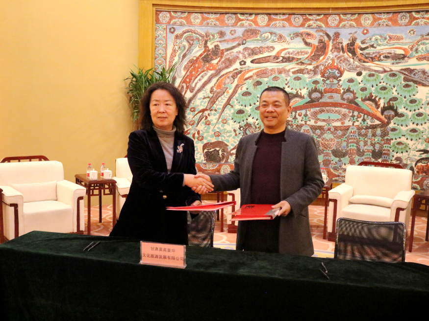 2月1日下午,敦煌研究院文化弘揚(yáng)部“莫高學(xué)堂”研學(xué)項(xiàng)目簽約儀式在莫高窟數(shù)字展示中心舉行。敦煌研究院文化弘揚(yáng)部部長(zhǎng)、甘肅莫高重華文化旅游發(fā)展有限公司總經(jīng)理李萍與敦煌千年古城文化發(fā)展有限公司董事長(zhǎng)牛新偉共同簽署研學(xué)項(xiàng)目合作協(xié)議。