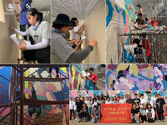 此次公益研學還開設了壁畫創(chuàng)作實踐課程。在老師的指導下,學員們結合敦煌壁畫飛天的典型特征、月牙泉小鎮(zhèn)特色以及對大音希聲的感悟,創(chuàng)作了全新壁畫作品——《梵韻》,為敦煌文化的傳承添上一筆獨特而靚麗的風景線。同時借助畫作,呼吁社會各界人士,關注千年敦煌的文化傳承,關注聽力障礙群體的藝術才華和社會價值。