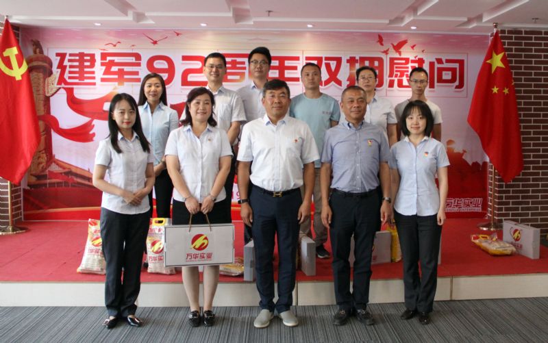 7月30日上午,為迎接八一建軍節(jié)的到來,萬華集團(tuán)黨支部開展了“不忘初心、牢記使命”雙擁慰問主題黨日活動(dòng)。萬華集團(tuán)黨支部書記、董事長牛新民,總經(jīng)理牛新偉,監(jiān)事會(huì)主席魏敏娟,集團(tuán)副總經(jīng)理兼董事會(huì)辦公室主任宿曉中,集團(tuán)副總經(jīng)理兼開發(fā)部總經(jīng)理杜牧拉,集團(tuán)財(cái)務(wù)總監(jiān)王鑫,甘肅大禹九洲測繪地理信息有限公司總經(jīng)理岳増琪、副總經(jīng)理?xiàng)顣x強(qiáng),甘肅萬華金慧科技股份有限公司董事會(huì)秘書王鑫出席活動(dòng),向現(xiàn)場23名退役軍人和軍人家屬送去節(jié)日的關(guān)懷和慰問,紀(jì)念中國人民解放軍建軍92周年。