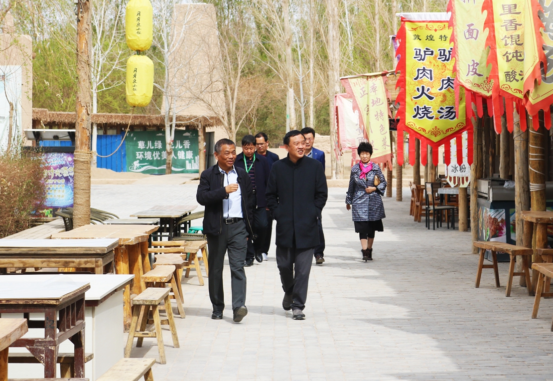 4月8日,中國(guó)文化傳媒集團(tuán)有限公司黨委書記、董事長(zhǎng)劉強(qiáng)一行4人來(lái)到千年敦煌·月牙泉小鎮(zhèn)民俗文化旅游景區(qū),就千年敦煌項(xiàng)目整體布局規(guī)劃開展實(shí)地考察。敦煌千年古城文化發(fā)展有限公司董事長(zhǎng)牛新偉、項(xiàng)目總監(jiān)熊秀霞現(xiàn)場(chǎng)接待。