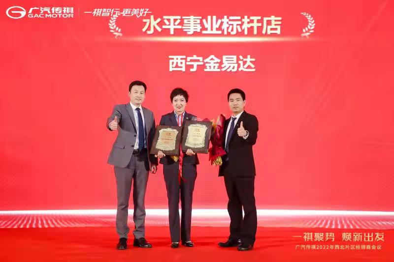 2月27日14時(shí),廣汽傳祺西北片區(qū)經(jīng)銷商會議在西安舉行,青海金易達(dá)汽車銷售服務(wù)公司榮獲2021年度廣汽租賃全國優(yōu)秀店等七項(xiàng)大獎。甘肅萬華實(shí)業(yè)集團(tuán)董事長牛新民,青海金易達(dá)汽車銷售服務(wù)有限公司總經(jīng)理趙艷麗、銷售經(jīng)理馬智淵、售后服務(wù)經(jīng)理包明慶、市場經(jīng)理薛瑩瑩參加會議。